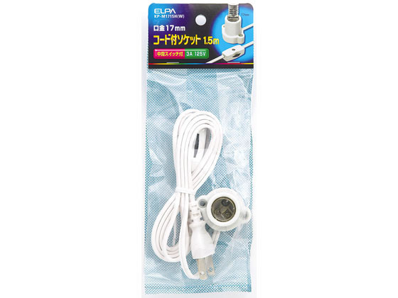 朝日電器 コード付ソケット E17口金 ホワイト KP-M1715H(W) 変換アダプタ ソケット 照明器具 ライト 家電