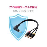 【商品説明】ビデオ/DVDデッキ等に接続されているお手持ちの映像RCAピンプラグ×3ケーブルに接続することで、AV入力用ミニジャック(4極)を搭載したテレビ等に接続して映像と音声を出力できるアナログビデオ変換ケーブルです。※4極ミニプラグの配線仕様(ピン配列)は統一されておらずメーカー・機種によって異なる場合があります。事前に接続される機器の配線仕様(ピン配列)をご確認ください。【仕様】●コネクタ形状:L型ミニプラグ(4極) − 映像RCAピンジャック×3メス ※ミニプラグピン配置は、先端から:音声左(白)、映像(黄)、アース、音声右(赤) ●対応機種:AV入力用ミニジャック(4極)を搭載したテレビ等と映像RCAピンプラグx3(オス)ケーブルとの接続 ●ケーブル長:0.15m ●カラー:ブラック <ジェットプライス>
