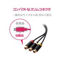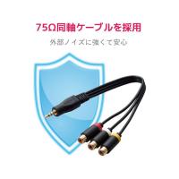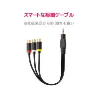 【商品説明】ビデオ/DVDデッキ等に接続されているお手持ちの映像RCAピンプラグ×3ケーブルに接続することで、AV入力用ミニジャック(4極)を搭載したテレビ等に接続して映像と音声を出力できるアナログビデオ変換ケーブルです。※4極ミニプラグの配線仕様(ピン配列)は統一されておらずメーカー・機種によって異なる場合があります。事前に接続される機器の配線仕様(ピン配列)をご確認ください。【仕様】●コネクタ形状:ストレート型ミニプラグ(4極) − 映像RCAピンジャック×3メス ※ミニプラグピン配置は、先端から:音声左(白)、映像(黄)、アース、音声右(赤) ●対応機種:AV入力用ミニジャック(4極)を搭載したテレビ等と映像RCAピンプラグx3(オス)ケーブルとの接続 ●ケーブル長:0.15m ●カラー:ブラック <ジェットプライス>