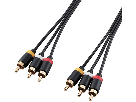 【商品説明】ビデオ・DVDデッキなどの映像・音声をテレビなどで再生できる、コンパクトで取り回しがしやすい映像・音声RCAピンプラグケーブルです。従来品より約25%小型化したスリムコネクタと、30%細くなった極細ケーブルを採用しています。※当社比外部ノイズに強い75Ω同軸ケーブルを使用しています。高純度OFC99.95%(無酸素銅)ケーブルを使用し、信号の歪みや伝送ロスを抑えます。【仕様】●コネクタ形状:映像RCAピンプラグ×3オス−映像RCAピンプラグ×3オス ●対応機種:映像RCAピンプラグ×3を搭載したDVDプレイヤー、テレビ等 ●ケーブル長:2.0m ●カラー:ブラック <ジェットプライス>