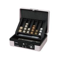 【商品説明】金銭の取り出しがスムーズな立て掛けコイントレーです。コイントレーを立て掛けることでコイントレーを持ち上げなくても庫内の収納物がすぐに取り出せます。コイントレーは各硬貨50枚収納でき、10枚ごとに区切りがあるので集計処理の時間も短縮できます。上蓋裏面のクッションで硬貨を押さえているので持ち運び時に生じる硬貨の飛散を防止します。トレー下は紙幣が折らずに入るフリースペースです。【仕様】●サイズ:(外寸)幅195×奥行155×高さ87mm、(内寸)幅164×奥行110×高さ27mm●重量:900g●材質:SPCC、ABS●施錠方式:錠前/ダイヤル錠●収納サイズ:A6サイズ●硬貨飛散防止●10枚区切りコイントレー●硬貨収納枚数:500円50枚、100円50枚、50円50枚、10円50枚、5円50枚、1円50枚●付属品:鍵2個●色:ピンク●注文単位:1台 <ジェットプライス>