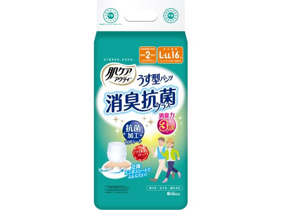 クレシア 肌ケア アクティ うす型パンツ 消臭抗菌プラスL-LL 16枚