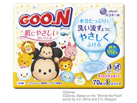 大王エリエール グーン肌にやさしいおしりふき詰替70枚×3個 おしりふき オムツ ベビーケア