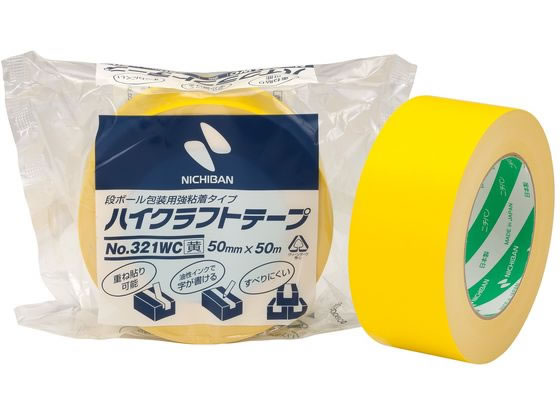 ニチバン ハイクラフトテープ No.321 50mm×50m 黄 321WC2-50 クラフトテープ ガムテープ 粘着テープ 梱包