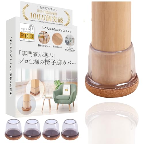 椅子脚カバー 【インテリアデザイナー監修】 いすの足カバー 『専門家が選ぶプロ仕様』 椅子足キャップ 透明 丸脚用 4個セット [床まもるんPRO]
