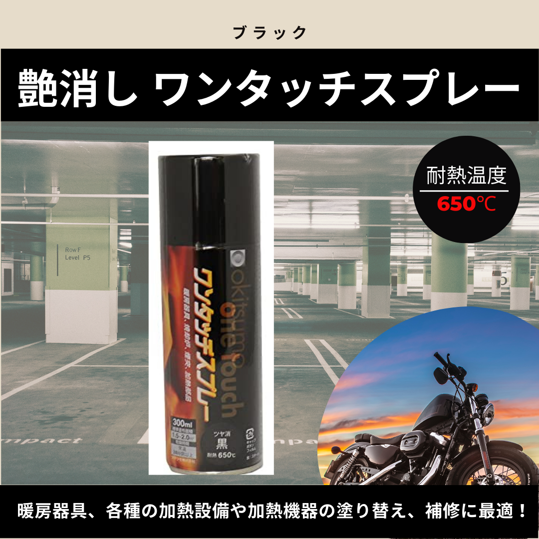 okitsumo 耐熱塗料 オキツモ ワンタッチスプレー 艶消し ブラック 300ml /650℃ 黒 塗料 バイク 車 焼却炉