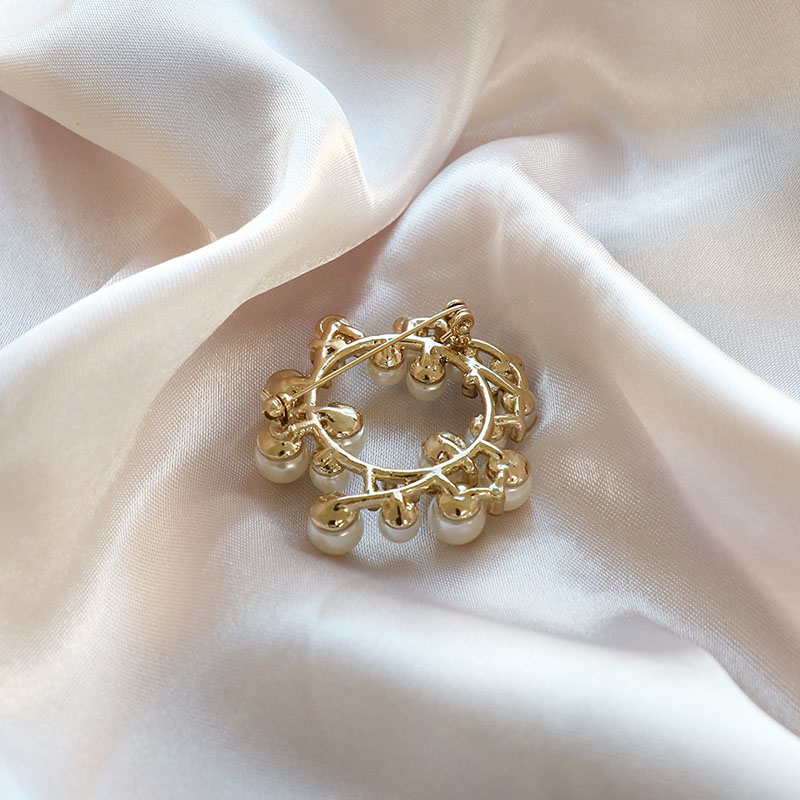 サークル型のキラキラと美しく煌めくパールブローチです。