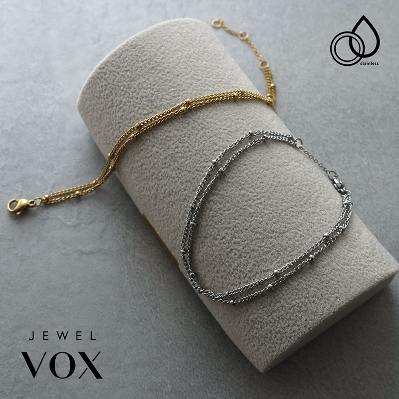 ブレスレット レディース ステンレス 金属アレルギー メタルボール チェーン 2連 シンプル 普段使い 結婚式 オケージョン 仕事 オフィス 女性 30代 40代 50代