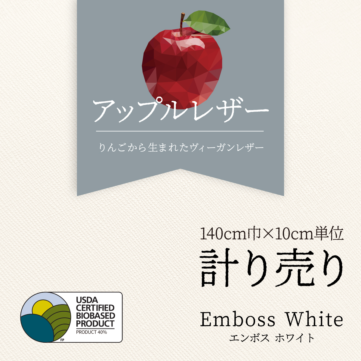 アップルレザー ヴィーガンレザー エンボス ホワイト 白 10cm単位計り売り 合成皮革 SDGs【合計3980円以上送料無料 】