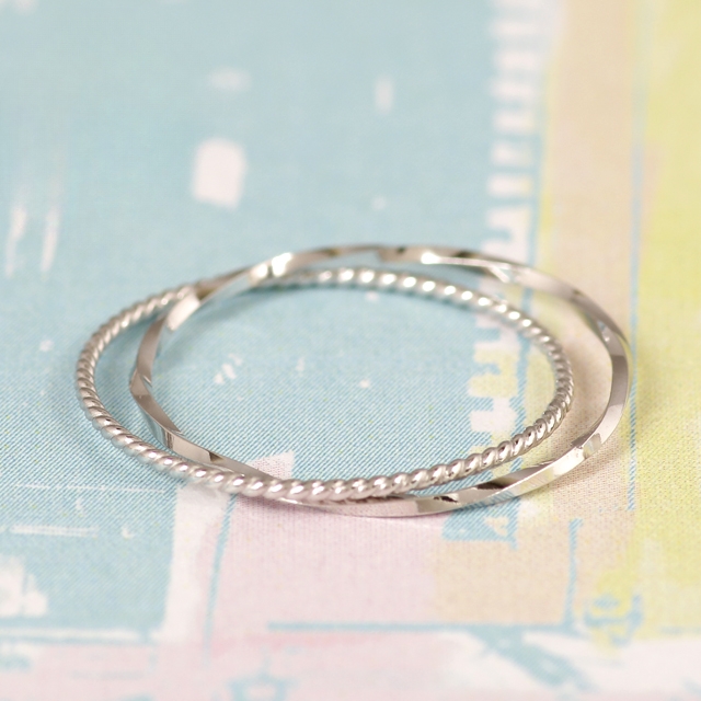 2つのデザインの違うリングが二連になったきれいめシンプルなリング♪