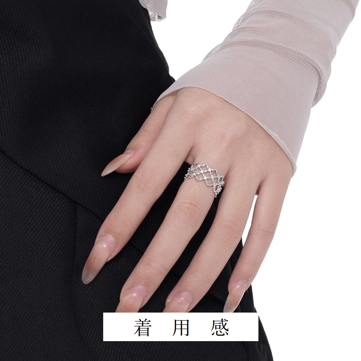 繊細に編み込まれた網目模様が指先に華やかさをプラスし、女性らしい柔らかな印象を与えます。