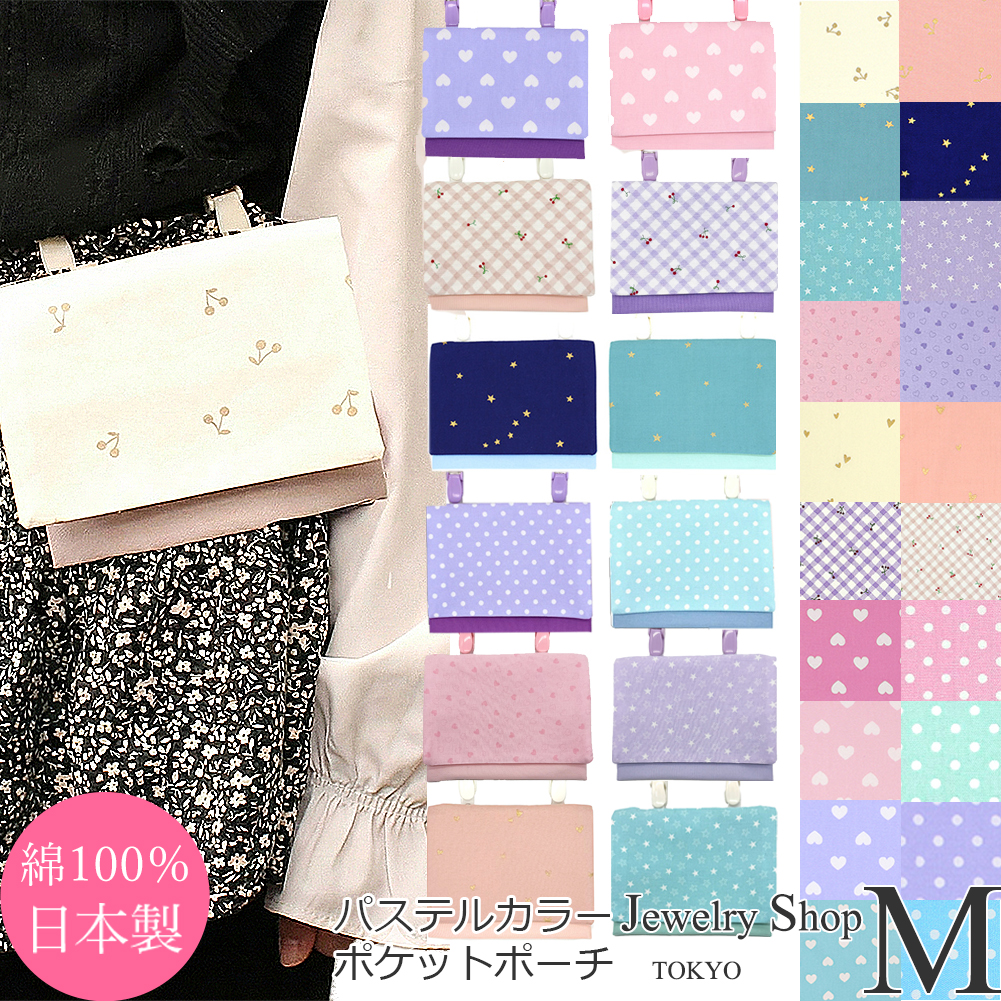 移動ポケット 女の子 移動 ポシェット クリップ付き シンプル ティッシュケース リボン スター しずく チェック ストライプ チェリー ハート ドット 国産