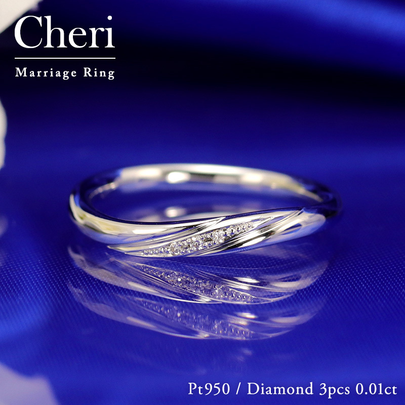 結婚指輪 ダイヤモンド プラチナ pt950 ダイヤ 指輪 ウェーブ 内甲丸 マリッジリング 刻印・シークレットストーン無料 FourLovers Cheri