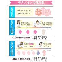 ・オーガニックおりものライナー:縦約15.5cm×横約14.5cm ・布ナプキン(一体型Mサイズ):縦約24.5cm×横約19.0cm ・布ナプキン(一体型Lサイズ):縦約33cm×横約18cm |