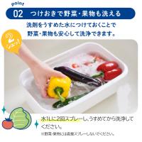 | 《使い方・使用量の目安》 ●哺乳びんなどの用品 約8cm四方に1回スプレーし、1分程度置いた後、水道水で洗い流してください。※こびりついた汚れはスポンジでこすり流してください。※洗うものの量や汚れ具合によってスプレー回数を調整してください。●野菜・果物の洗浄、つけおき洗い 水1Lに2回スプレーし、うすめてから洗浄してください。※野菜・果物には直接スプレーしないでください。●スポンジの除菌 スポンジをよく絞り、スプレーの先端を押し付けた状態で、約8回スプレーして、まんべんなく浸透させ、次に使用するまでそのままにしておいてください。※すべての菌を除菌するわけではありません。●使い始めは液が出てくるまで数回レバーを引いてください。●レバーは最後まで強く引ききって使用してください。 【使用上の注意】 ●用途以外に使用しないでください。●子供の手の届くところに置かないでください。●うすめた液を長時間おくと変質することがありますので、使用の都度うすめてください。●野菜・果物を洗うときは5分以上つけたままにしないでください。●流水ですすぐ場合は、野菜・果物は30秒以上、食器・調理器具は5秒以上、ため水の場合は、水を替えて2回以上すすいでください。●お肌の敏感な方や原液のままご使用される場合、また長時間使用される場合は、炊事用手袋をご使用ください。●使用後は手を水でよく洗ってください。●使わない時はスプレー先端部分をOFFに合わせて、立てて保管してください。●他の洗剤と混ぜないでください。●スプレー先端に洗剤が固まり、思わぬ方向に泡が飛び出す場合があるので、取り除いてからお使いください。 【応急処置】 ●万一飲み込んだ場合は、水を飲ませるなどの処置をしてください。●目に入った場合は、こすらずにすぐ水で洗い流してください。●いずれも異常が残る場合には専門医に相談してください。 |