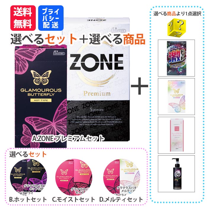 《お好きなコンドーム2個セット+選べる商品1個 》 当店のオリジナルコンドームセットです ・ZONE ゾーン プレミアム ラテックス製 5個入×1箱(販売名:ジェクスコンドームTN-N / 医療機器認証番号:224AKBZX00085000) ・グラマラス バタフライ ホット 500 6個入×1箱 (販売名:ジェクスコンドームGOL / 医療機器認証番号:224AKBZX00088000) ・グラマラスバタフライ ホット1000 12個入×1箱 (販売名:ジェクスコンドームPL / 医療機器認証番号:224AKBZX00088000) ・グラマラスバタフライ モイスト500 6個入×1箱 (販売名:ジェクスコンドームPL / 医療機器認証番号:224AKBZX00088000) ・グラマラスバタフライ モイスト1000 12個入×1箱 (販売名:ジェクスコンドームPL / 医療機器認証番号:224AKBZX00088000) ・グラマラスバタフライ メルティ10個入×1箱 (販売名:ジェクスコンドームRL-NP / 医療機器認証番号:227AKBZX00001000) ・激ドット ロングプレイタイプ 8個入×1箱 (販売名:ジェクスコンドームDRL-N / 医療機器認証番号:227AKBZX00111000) ・潤滑ゼリーリューブゼリー デリケートイン 6g×4本入 ・ZONEブースター オイル風ローション 200mL×1本 (販売名:ZONEブースターローションOL) |