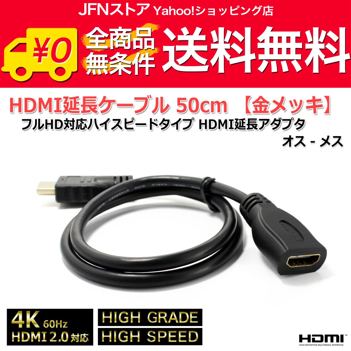 【商品詳細情報】コネクター部含む全長約50cmのHDMI延長ケーブルです。