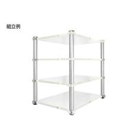 透明なアクリルボードとアルミ製支柱のスタイリッシュなデザインで、小型オーディオを綺麗に見せる収納で!