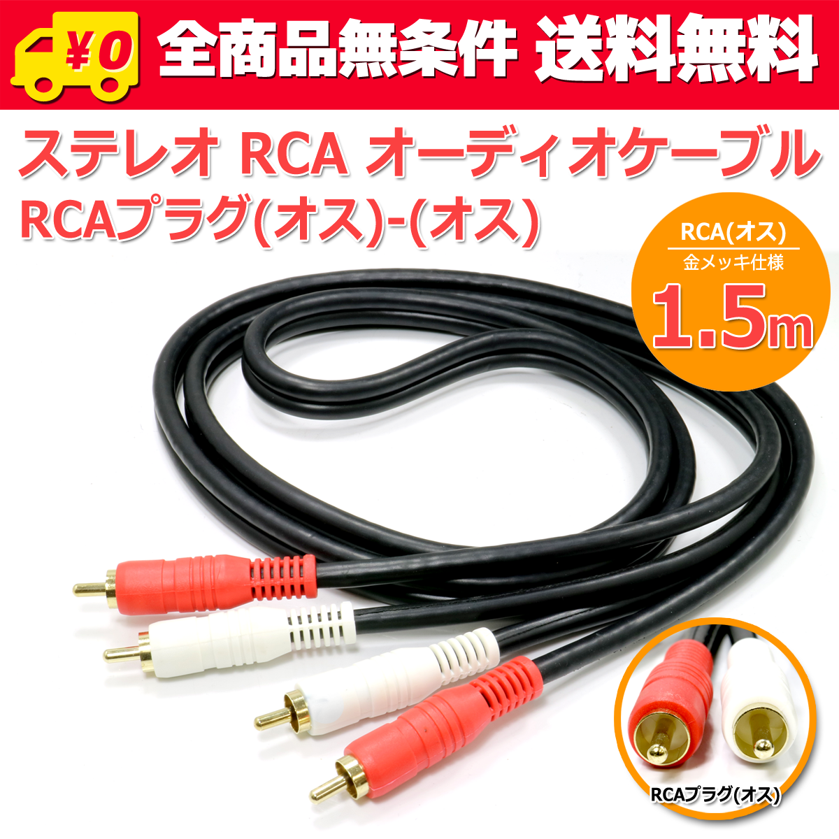 オーディオケーブル 赤・白 RCAケーブル 1.5m RCAピンプラグ(オス-オス)金メッキ仕様