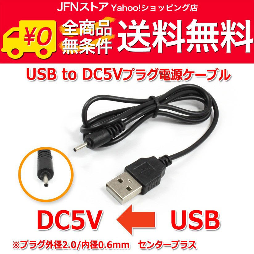 入力側はUSB A-TYPE オス、出力側はDCプラグ 外径2.0mm/内径0.6mmです。