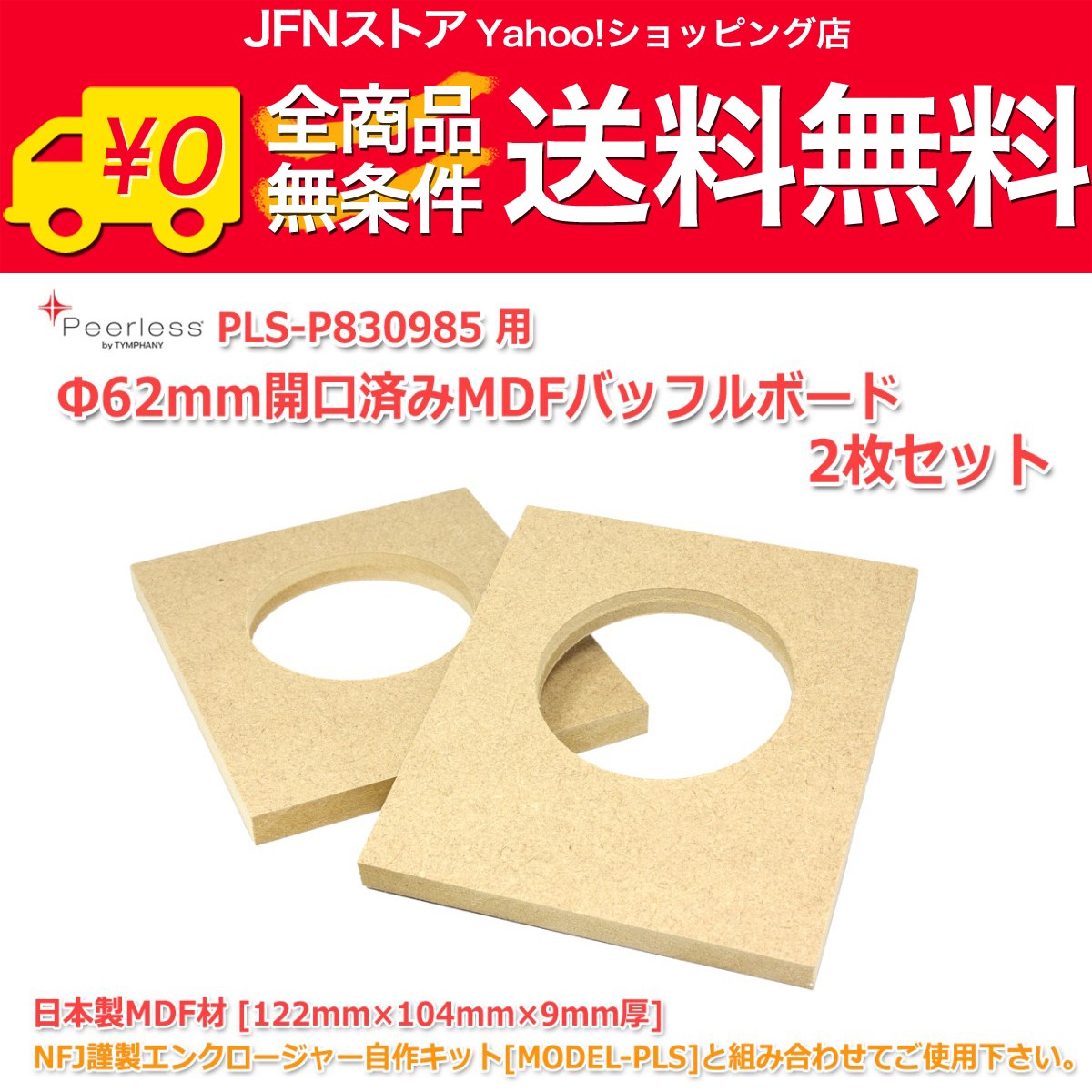 Φ62mm開口済MDFバッフルボード[122mm×104mm×9mm厚]2枚セット エンクロージャーキット[MODEL-PLS] PLS-P830985対応