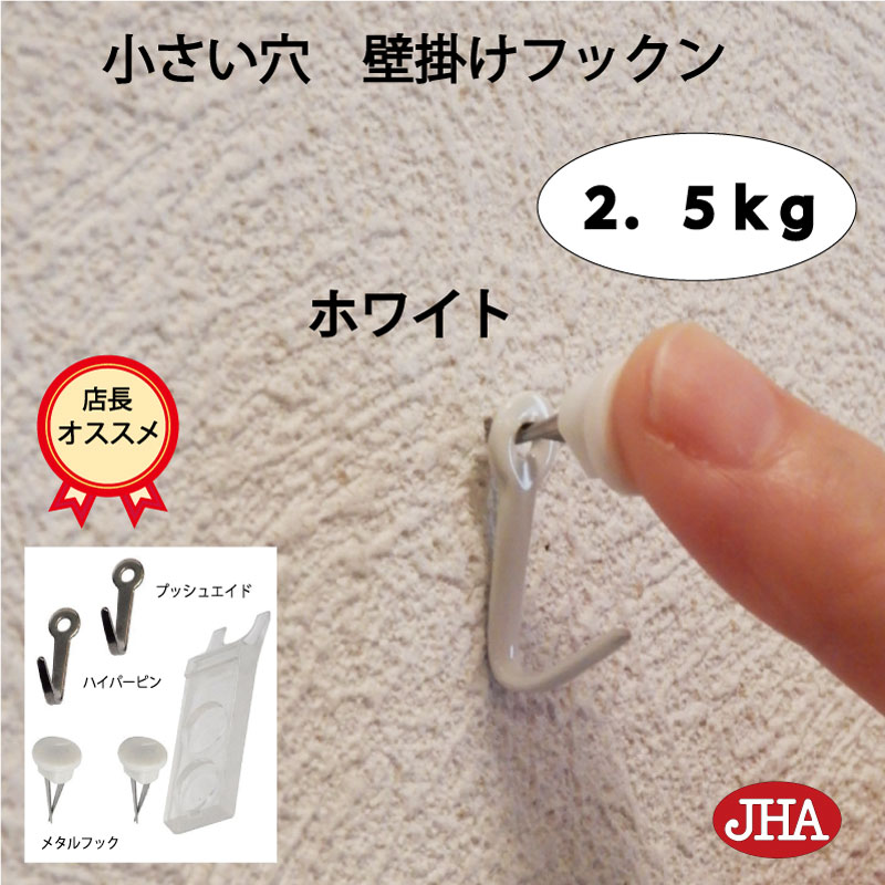 耐荷重2.5kg 仕上がり綺麗 (壁掛け フックン:ホワイト)F-25K-W 目立たない 画びょう 画鋲 壁 小さい穴 フック 金具 吊り金具フック 石こうボード 賃貸 壁掛け