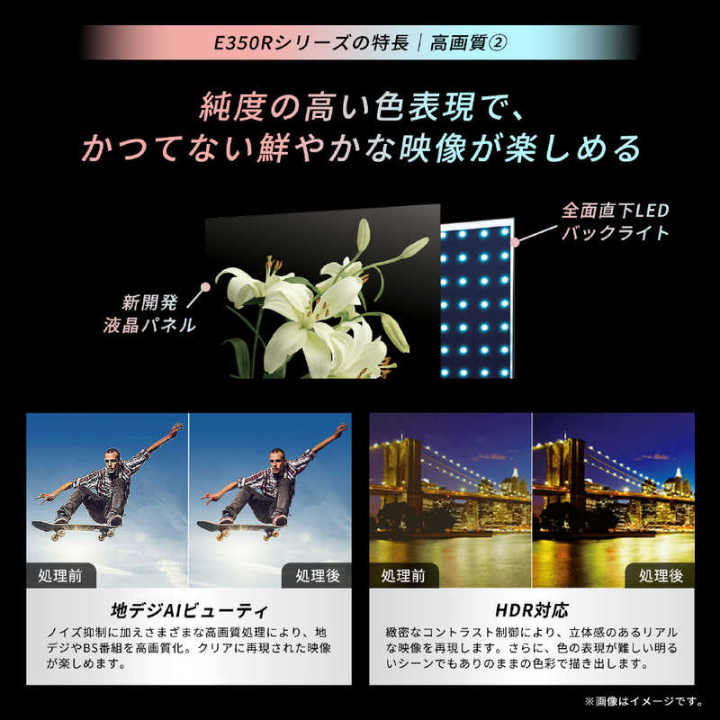 ネット動画の映像も高画質に再現。ネット動画の特性に合わせて高画質処理することにより、コントラスト・精細感をアップさせ、低フレームレートコンテンツもなめらかに再生します。さらに、「ナチュラルフェイストーン」が、ネット動画でも人肌を自然で美しい色合いに再現します。
