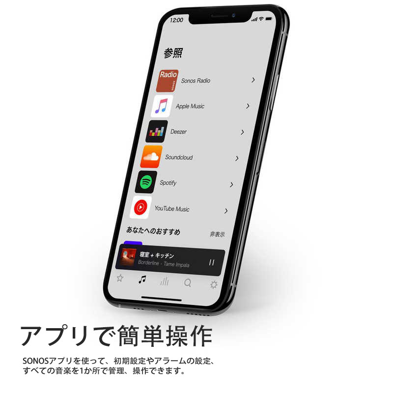音楽を心ゆくまで楽しみましょう。テレビを見ていないときは、SonosアプリやAppleAirPlay2で、音楽、ラジオ、ポッドキャストなどをお気に入りのサービスからストリーミングできます。
