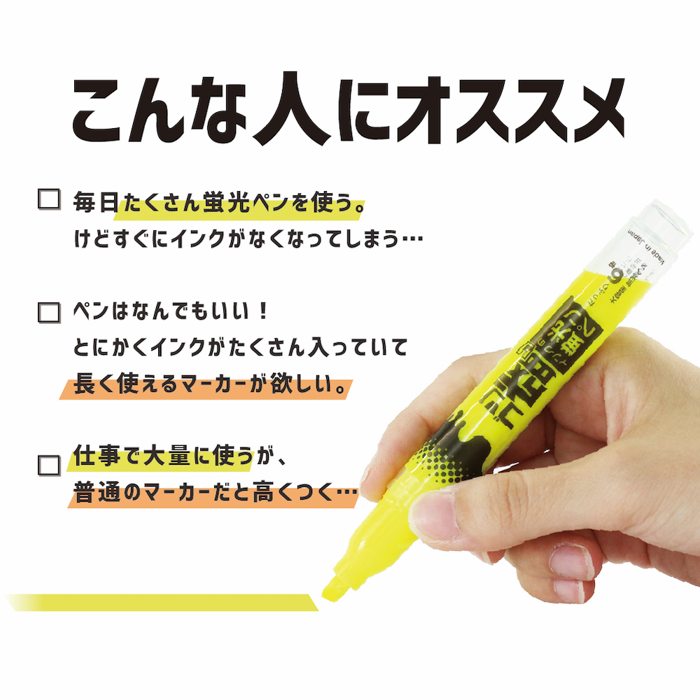 超大容量で長く使える!ゴツ盛りインクの蛍光ペン。