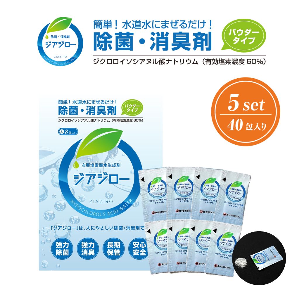 次亜塩素酸水 顆粒 パウダー 除菌 消臭 瞬間消臭 ニオイ菌 微酸性 弱酸性 ペット ジアジロー 5セット 合計40包入り