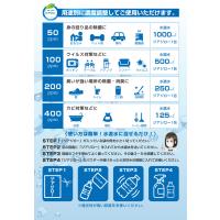 | 使用上の注意 | ・保護メガネ、保護手袋、保護マスクを着用 ・本品は食べ物ではありません。 ・水道水以外のものと混ぜないでください。 ・次亜塩素酸ナトリウムとは別物です。混同しないでください。 ・有機物に弱いため、予め汚れを落としてからご使用ください。 |