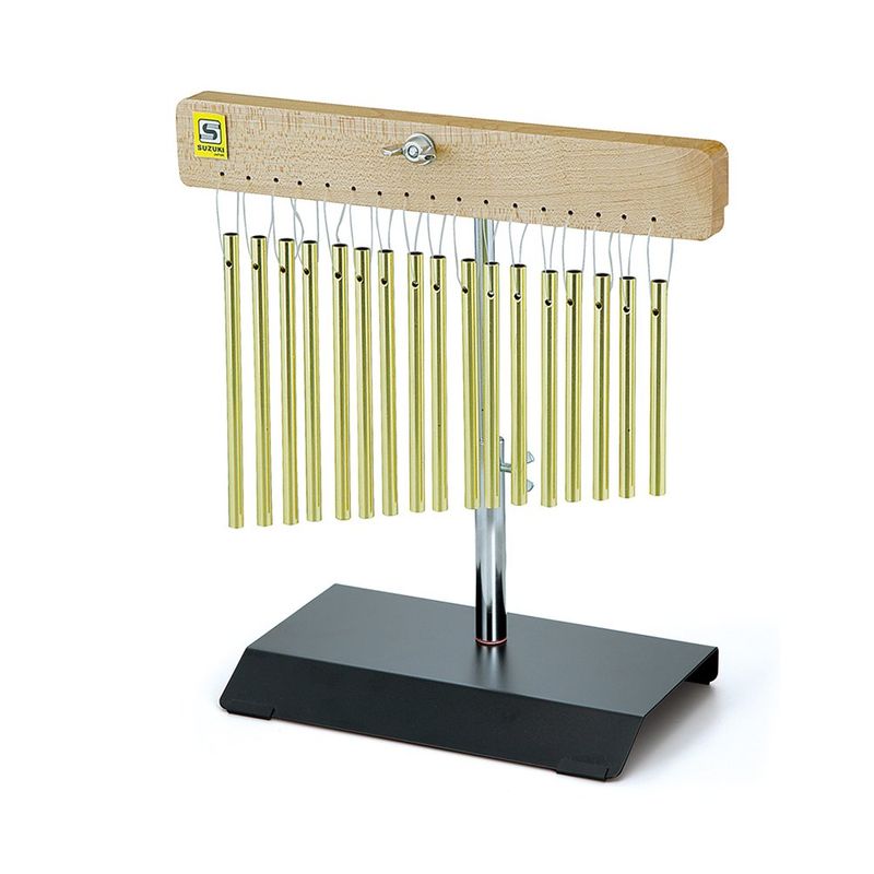 17バーのチャイムです。 効果音として活躍するツリーチャイムは、この楽器でしか出せない音色で演奏が華やかになります。 机上やピアノの上に置いて演奏する事もでき、小さいスペースでの演奏も可能です。 また、チャイムとチャイムのバーは一つずつ紐で吊るしている為 紐が切れてしまってもすべてのチャイムが落ちてしまうということはありません。 替え紐5本付きですので安心です。 スタンドから板をはずし片手で差し出して、使用することもできます。 どなたでもツリーチャイムに触れられ楽しめるようになっています。 この商品よりも音域を広げた35バーで、スタンド型の「ツリーチャイム MM-35」もございます。 チャイム:17バー 材質:真鍮パイプ 寸法:30×14×31.5cm 重量:1.3kg 付属品:卓上スタンド