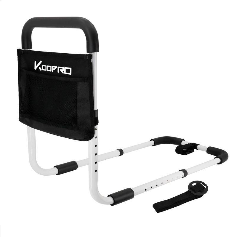 KOOPRO ベッドガード 起き上がり 柵 手すり 立ち上がり補助器具 8段長さ 7段高さ調節可能 転落防止 手摺り ストラップ 小物整理バ