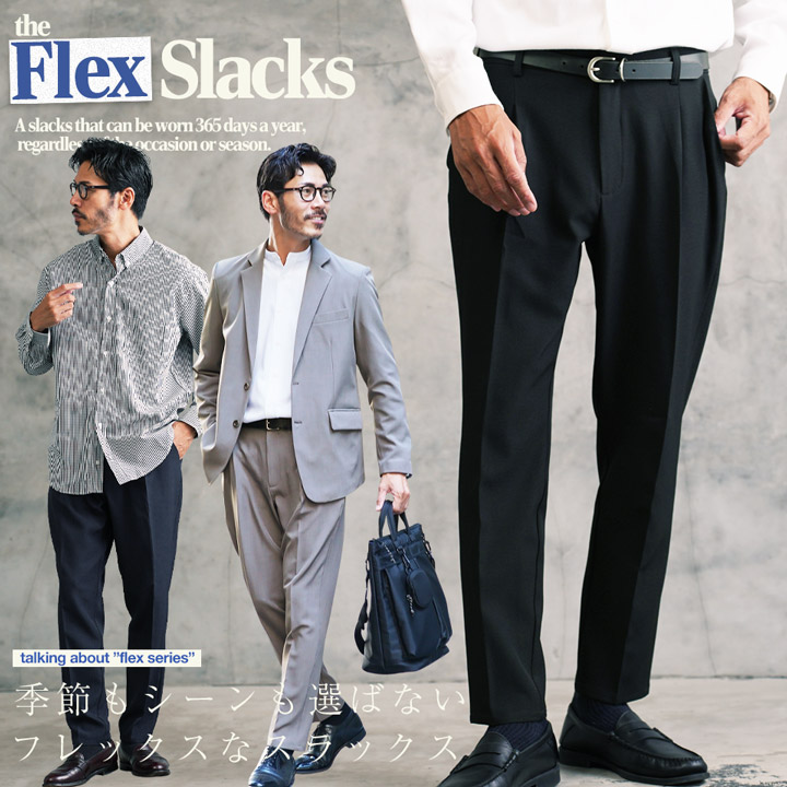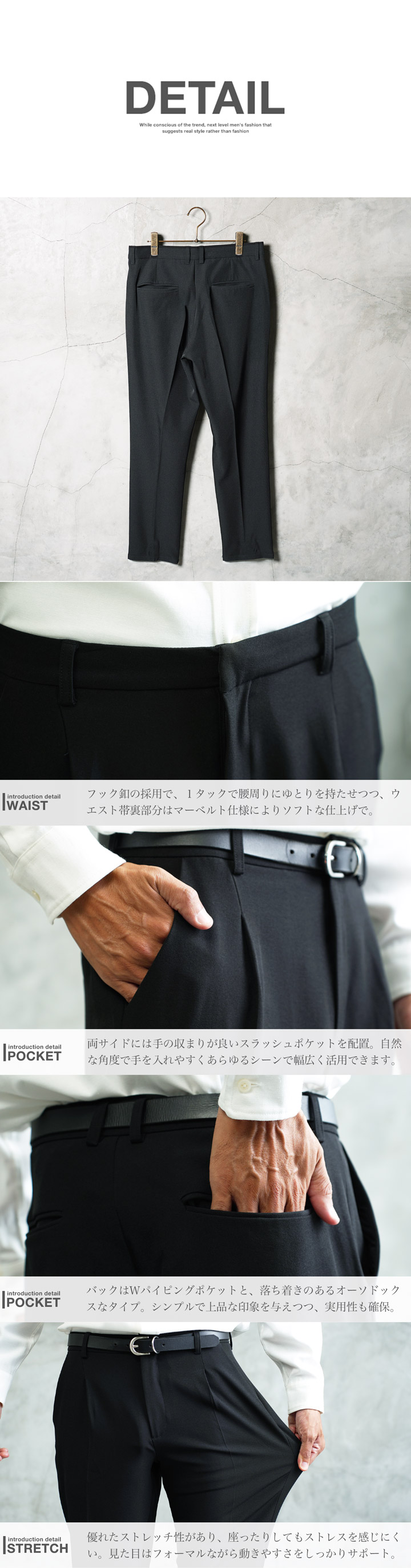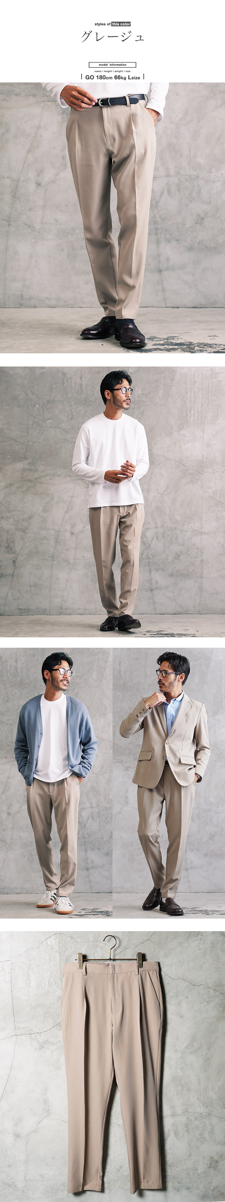 スラックス メンズ ボトムス タック テーパードパンツ ストレッチ 伸縮性 ビジカジ オフィスカジュアル スーツ 冠婚葬祭 秋服 春服