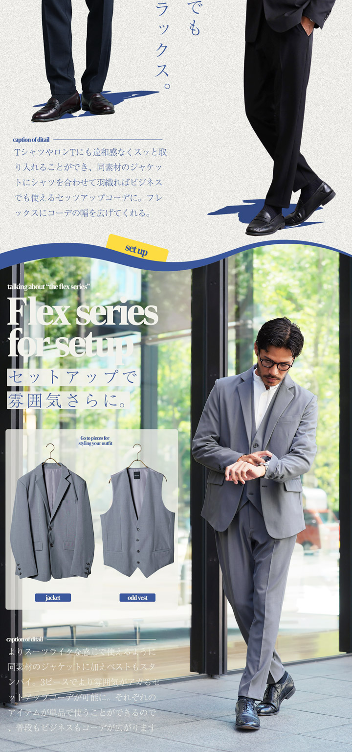 同素材のテーラードジャケットやベストと合わせてセットアップとしても使える。