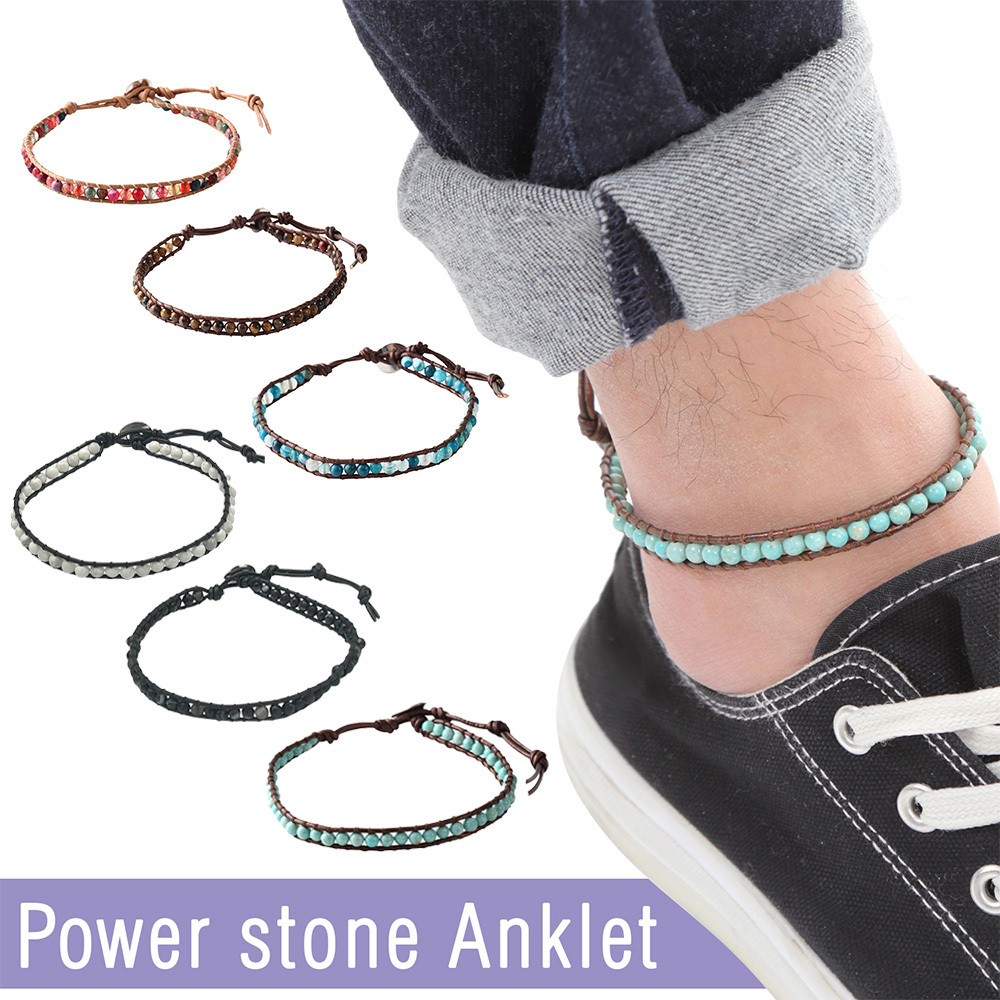 アンクレット パワーストーン メンズ レディース 本革 レザー 天然石 サイズ調整可能