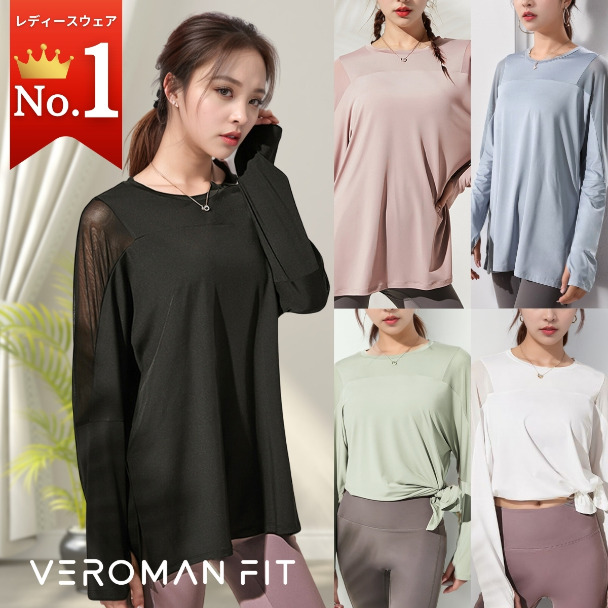 ヨガウェア トップス 長袖 ヨガトップス ヨガ 体型カバー ゆったり ロング丈 レディース ロングtシャツ メッシュ ピラティス ppi-meshtops VEROMAN FIT