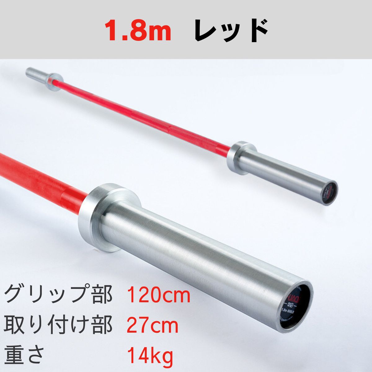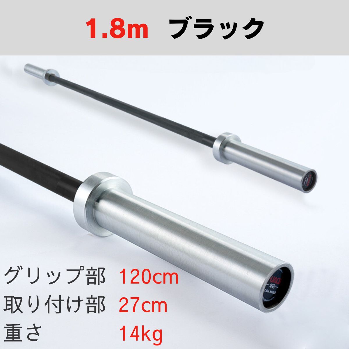 1.8m耐荷重270kg:グリップ部120cm 取り付け部27cm 直径28mm 重さ14kg