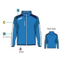 チーム用の布帛ジャケットです。フィットシルエットですっきり見えるパターンを採用しています。