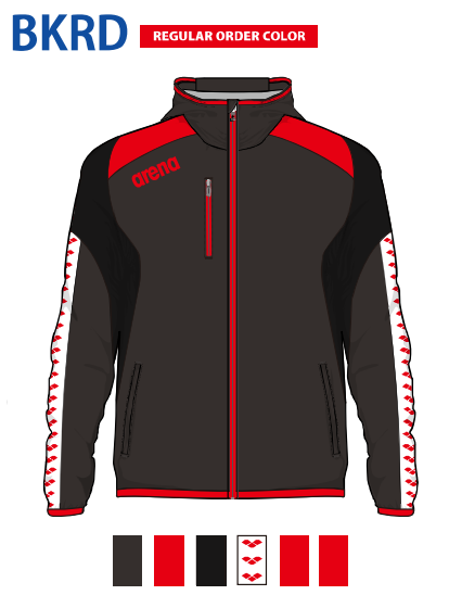 アリーナ カスタムオーダー受注生産 ウインドジャケット(ユニセックス)チームウエア OSS4JKU001-BKRD ベースカラー:ブラック