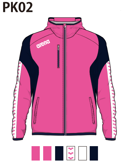 アリーナ カスタムオーダー受注生産 ウインドジャケット(ユニセックス)チームウエア OSS4JKU001-PK02 ベースカラー:ピンク