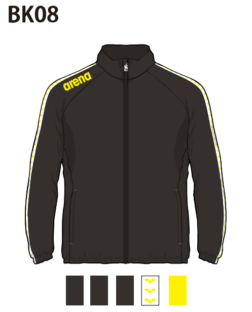 アリーナ カスタムオーダー受注生産 ウインドジャケット(ユニセックス)フード無しチームウエア OSS4JKU003-BK08 ベースカラー:ブラック