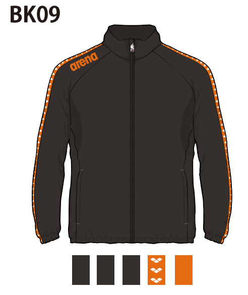 アリーナ カスタムオーダー受注生産 ウインドジャケット(ユニセックス)フード無しチームウエア OSS4JKU003-BK09 ベースカラー:ブラック
