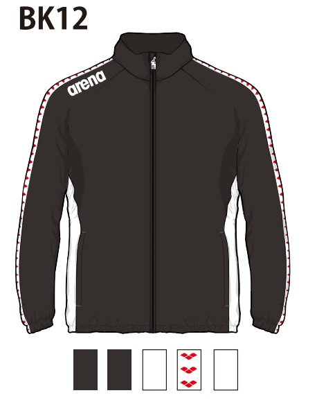 アリーナ カスタムオーダー受注生産 ウインドジャケット(ユニセックス)フード無しチームウエア OSS4JKU003-BK12 ベースカラー:ブラック