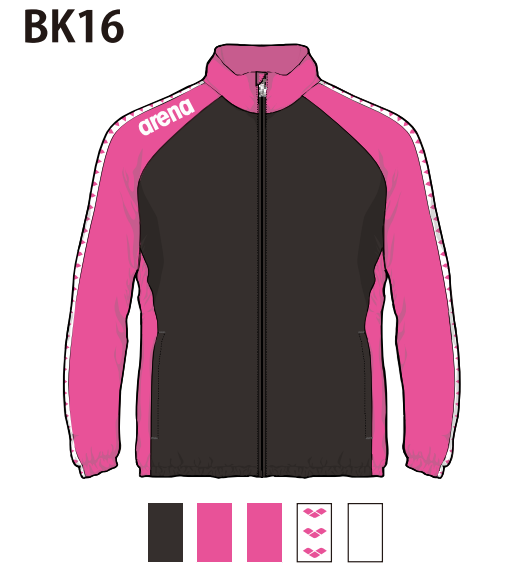 アリーナ カスタムオーダー受注生産 ウインドジャケット(ユニセックス)フード無しチームウエア OSS4JKU003-BK16 ベースカラー:ブラック