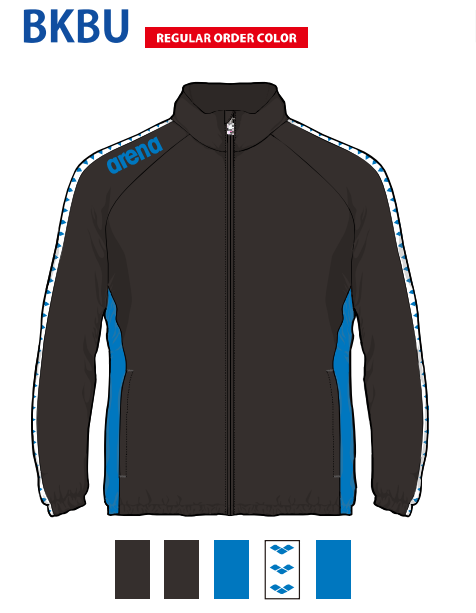 アリーナ カスタムオーダー受注生産 ウインドジャケット(ユニセックス)フード無しチームウエア OSS4JKU003-BKBU ベースカラー:ブラック