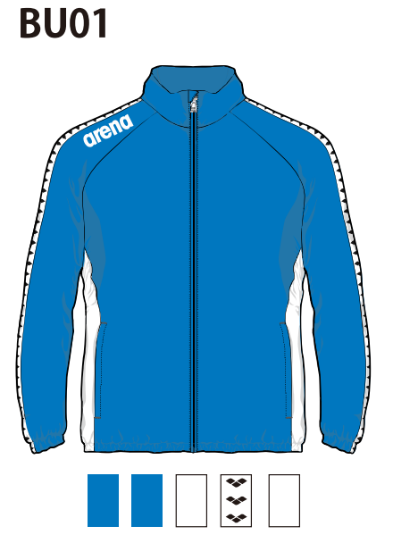 アリーナ カスタムオーダー受注生産 ウインドジャケット(ユニセックス)フード無しチームウエア OSS4JKU003-BU01 ベースカラー:ブルー
