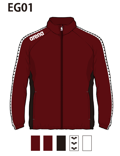 アリーナ カスタムオーダー受注生産 ウインドジャケット(ユニセックス)フード無しチームウエア OSS4JKU003-EG01 ベースカラー:エンジ