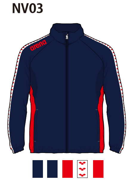 アリーナ カスタムオーダー受注生産 ウインドジャケット(ユニセックス)フード無しチームウエア OSS4JKU003-NV03 ベースカラー:Dネイビー