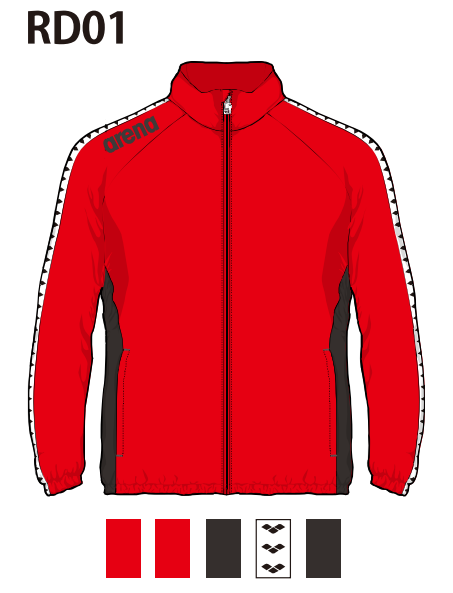 アリーナ カスタムオーダー受注生産 ウインドジャケット(ユニセックス)フード無しチームウエア OSS4JKU003-RD01 ベースカラー:レッド